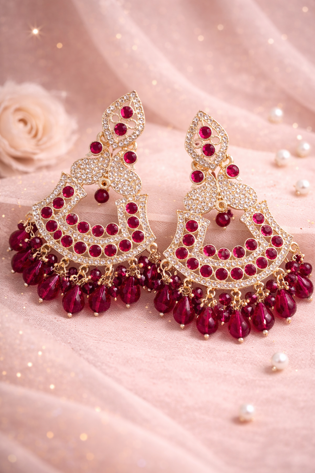 Elevate your festive wardrobe with our Bali/Jhumka, a stunning statement piece that marries timeless tradition with contemporary style. These premium earrings feature a luxurious gold-tone finish adorned with sparkling stones that catch light beautifully, making them an instant showstopper for any occasion. Designed for versatility, they complement sarees, lehengas, salwar suits, and Indo-western ensembles with equal grace. Whether you're celebrating Eid, attending a wedding, or making an entrance at a special event, these jhumkas deliver striking elegance without compromising comfort. Lightweight construction ensures you can wear them all day while turning heads. An essential addition to every jewelry collection for those who appreciate festive glamour.